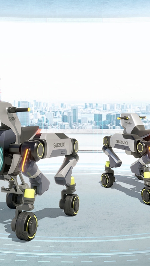 Suzuki and BASF have partnered to explore Suzuki’s next-generation mobility concept - MOQBA2 (Modular Quad-Based Architecture). This forward-thinking concept showcases groundbreaking design and functionality, enabling the vehicle to ascend and descend steps with four legs and adapt to diverse mobility needs with four variations: Bike, Stand Up, Chair, and Stretcher.